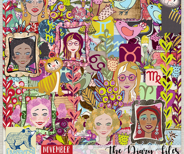 I have certainly thought of it for a long time: Should I do another year of Diary Files? Or should I do something very different from that. Now, almost at the end of the year designwise, I come to a few conclusions that will have impact for those who follow me in the scrapbook world: I won't stop with digital scrapbooking, do not want to stop with Digital Scrapbooking Studio either. But... there won't be another year of the Diary Files. If you know my collections for TDF, you know that the collections are huge and that I almost always need a little bit more time than I have. That's the main reason why I want to make a commitment to myself: so yes, I will go on designing for digital scrapbooking, and yes, I will implement elements like dolls and brushes and pocket cards and wreaths etc., but no, I won't do a daily template anymore. Though I loved to design them, this is the most exhausting part of all. To make around 30 pages of them per month finally made me decide I quit this part of the deal in 2019.